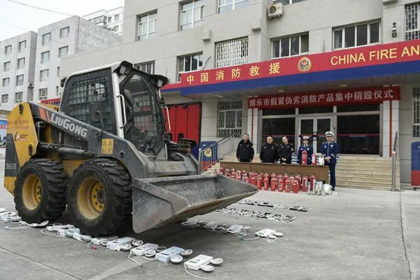 3月13日下午,博樂市消防救援大隊聯合市場監督管理局集中銷毀一批假冒偽劣消防產品。活動現場,工作人員利用切割機、工程車將前期查獲的假冒偽劣消防產品進行了集中銷毀處理。據介紹,假冒偽劣消防產品危害巨大,嚴重威脅群眾的生命財產安全。此次集中銷毀的假冒偽劣消防產品包括滅火器、應急照明燈、煙感報警器、疏散指示燈等,共計100余件。