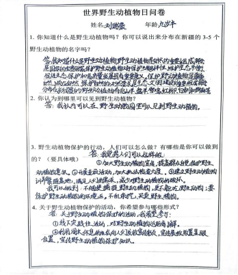世界野生動植物日問卷(劉瑞豪,9歲)