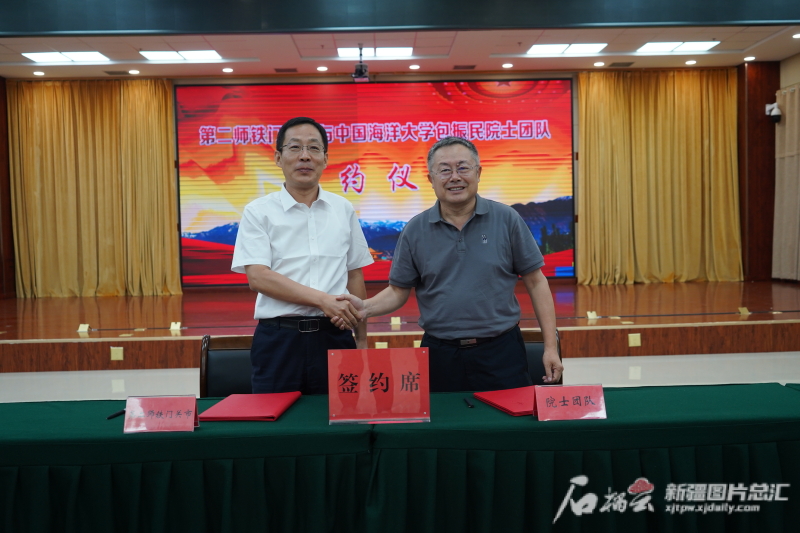7月15日,包振民院士團隊與第二師鐵門關(guān)市政府簽訂科技合作框架協(xié)議,雙方將在發(fā)展微咸水、鹽堿水水產(chǎn)養(yǎng)殖領(lǐng)域開展合作。 石榴云/新疆日報記者 王昕攝