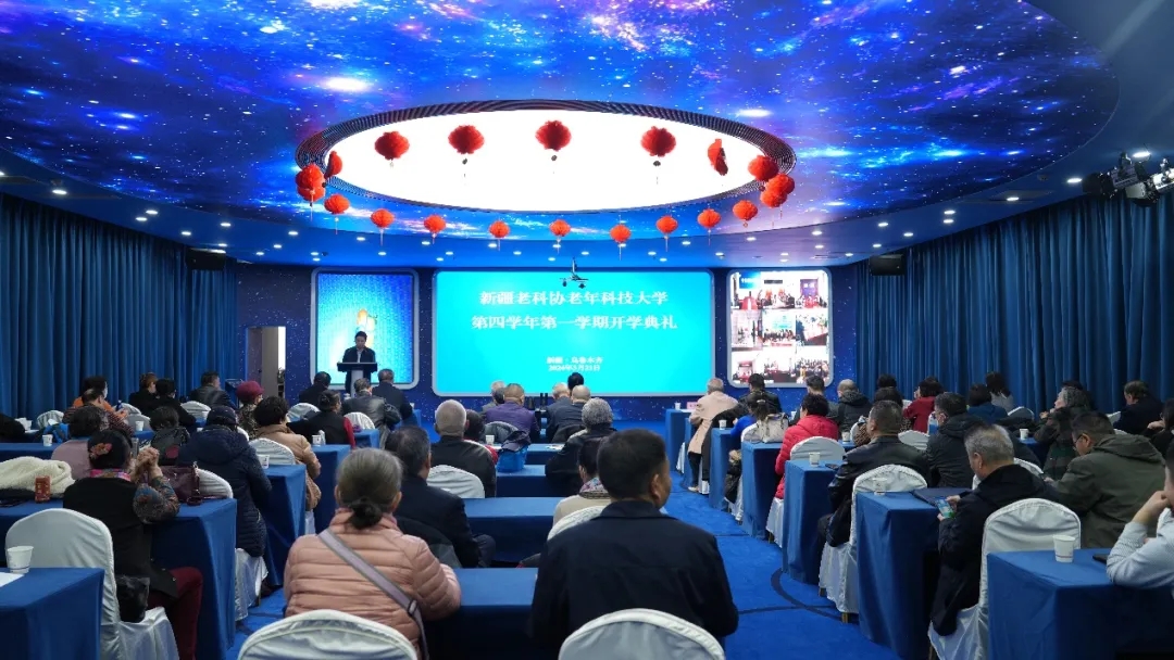 王光強(qiáng)在致辭中向新疆老年科技大學(xué)2024學(xué)年第一學(xué)期的開學(xué)表示熱烈祝賀!王光強(qiáng)指出,新疆老科協(xié)充分發(fā)揮老年科技大學(xué)品牌效應(yīng),為老年群體科學(xué)素質(zhì)教育發(fā)揮了重要作用,為提高全民科學(xué)素質(zhì)作出了突出貢獻(xiàn)。老科協(xié)的銀齡行動(dòng)計(jì)劃和老年科技大學(xué)的辦學(xué)經(jīng)驗(yàn)值得自治區(qū)大力學(xué)習(xí)推廣。他強(qiáng)調(diào),自治區(qū)科協(xié)將一如既往地支持老科大的工作,為新疆老年科技大學(xué)做好服務(wù),支持各地老科協(xié)面向社會(huì)廣泛吸納學(xué)員,有條件的地方推動(dòng)老科大教學(xué)點(diǎn)向社區(qū)延伸,鼓勵(lì)老年科技大學(xué)的課程向各類老年教育機(jī)構(gòu)、各級(jí)老干活動(dòng)中心、老年大學(xué)、養(yǎng)老服務(wù)機(jī)構(gòu)、社區(qū)和村鎮(zhèn)開放;為老科大提供全程科普講座直播平臺(tái),打造永不落幕的網(wǎng)上課堂。