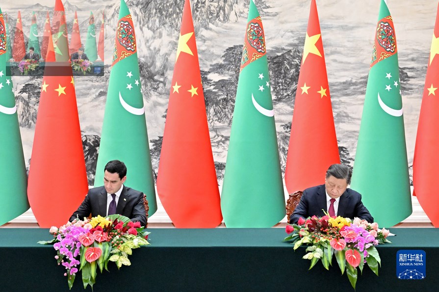 會談后,兩國元首簽署并發(fā)表《中華人民共和國和土庫曼斯坦聯(lián)合聲明》,共同見證簽署“一帶一路”、綠色發(fā)展、數(shù)字經(jīng)濟(jì)、衛(wèi)生、文化、體育、新聞媒體、天然氣等領(lǐng)域合作文件。