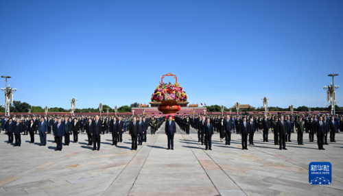 臨近10時,習近平、李強、趙樂際、王滬寧、蔡奇、丁薛祥、李希、韓正等黨和國家領導人來到天安門廣場,出席向人民英雄敬獻花籃儀式。