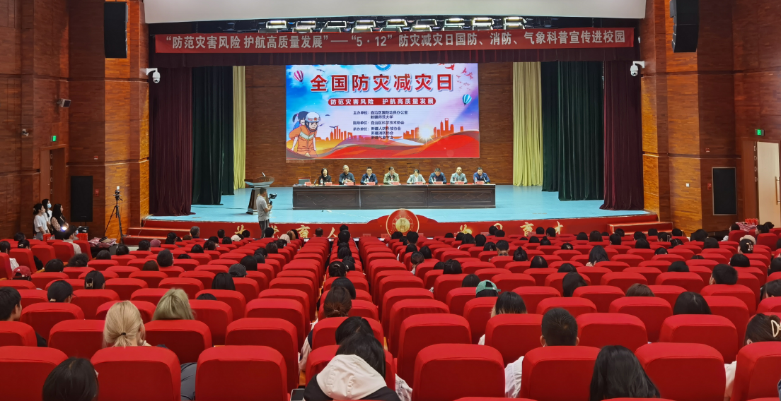 活動中,在新疆師范大學溫泉校區昆侖講堂,400余名師生代表集體觀看了2023年國務院防災減災日科普宣傳視頻。活動結合校園安全實際,同步開展了國防人防、消防科普知識講座、防災減災科普知識有獎答題、防災減災自救技能演示和疏散演練等活動。