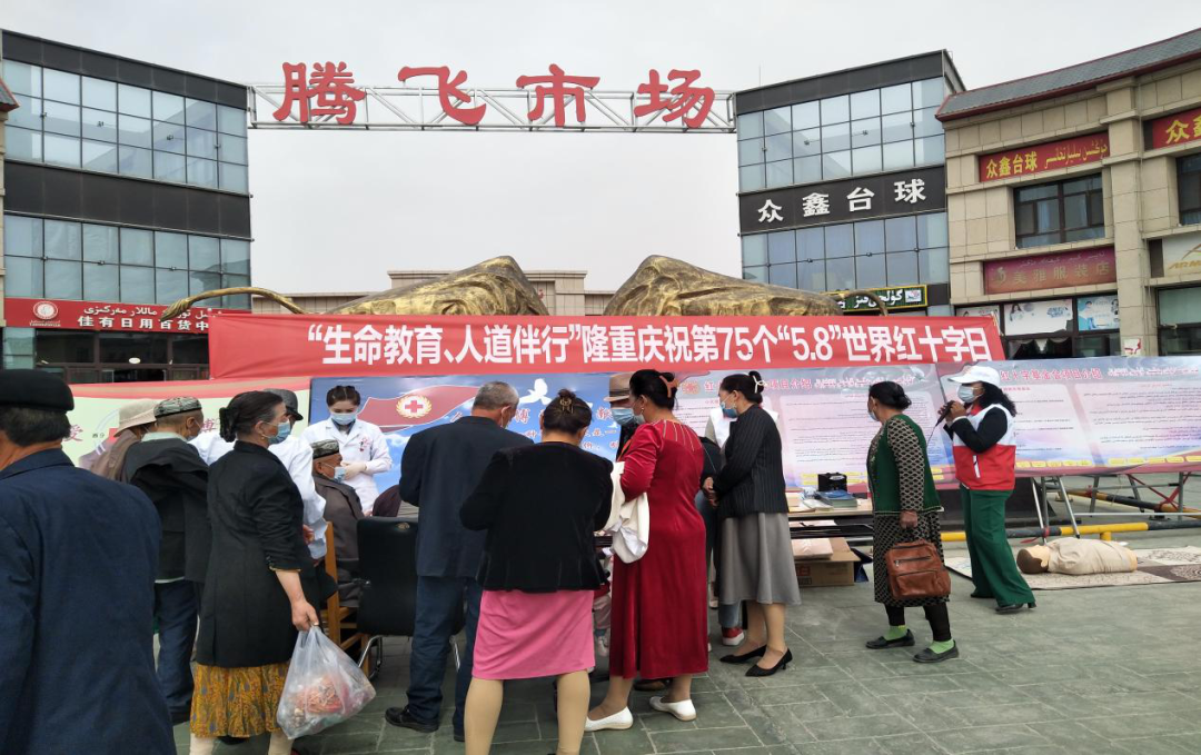 在活動中,新和縣科協、縣紅十字會聯合新和鎮各社區紅十字會、縣中醫醫院等紅十字會團體會員單位,在縣騰飛市場開展應急救護、艾滋病預防、健康、防震減災等各類科普知識的宣傳。并現場為過往群眾測量血壓、演示心肺復蘇操作技能。