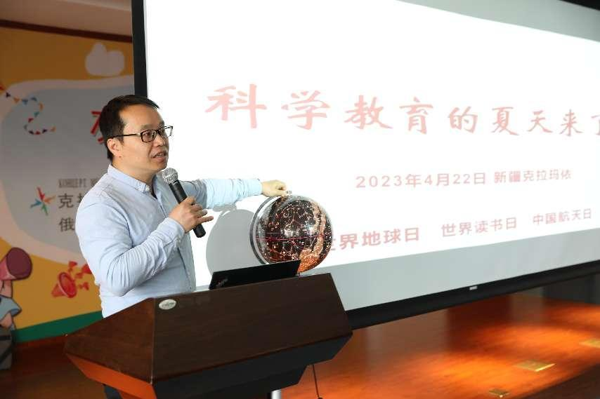 克拉瑪依市科協特邀教育部義務教育科學課標修訂組專家、教科版《科學》教材科學家團隊的負責人鄭永春教授,圍繞《科學教育加法怎么做》作了專題報告。鄭永春分別從為什么要做加法、怎么做加法、做好科學教育加法的建議三個角度,系統分析并詳細講解了科技教育工作者做好科學教育的方法和途徑。同時,建議廣大科技教育工作者要尋找科學教育與學科教育的結合,從加強教材建設、考試評價方式、人才隊伍建設、教學方式和資源建設等方面提升科技教育水平。培訓中設立了提問贈“科普太空”地圖的互動環節,現場氣氛熱烈。