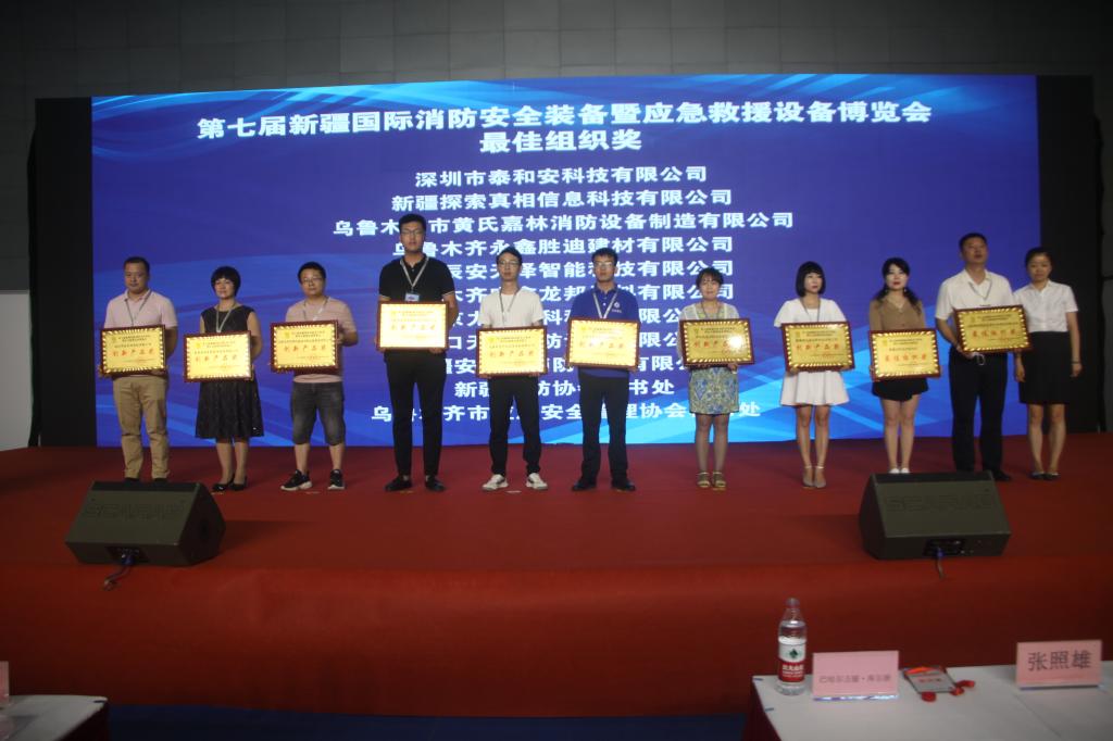 第七屆新疆國際消防安全應急救援設備博覽會組委會授予9家參展企業“創新產品獎”、授予2個協辦單位“最佳組織獎”。