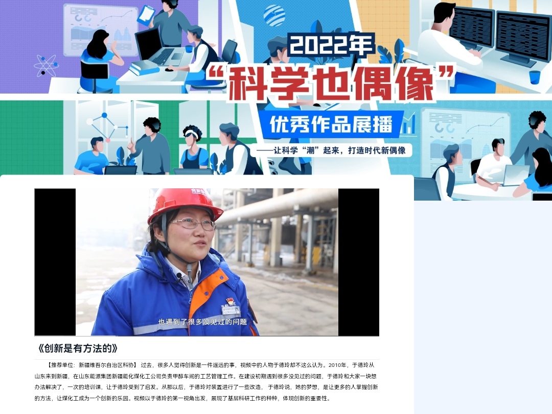 活動于2022年5月啟動,共征集了1000余部短視頻,經網友票選和線上線下兩輪專家評審,最終確定1個一等獎、3個二等獎、10個三等獎和其它優秀、入圍獎項。其中,中國石油新疆油田公司勘探開發研究院趙龍作品《滾滾油流涓涓愛——覃建華科技報國事跡短片》獲得二等獎;新疆氣象學會、新疆氣象服務中心伊力哈木作品《綠色生態工匠——毛煒嶧》榮獲三等獎;新疆植物學會康曉珊作品《科研工作者的生命永遠年輕》 、新疆維吾爾自治區中藥民族藥研究所趙亞琴作品《邊疆中藥人——李曉瑾團隊》、山東能源集團新疆能化公司李響作品《創新是有方法的》獲得“優秀視頻”獎。