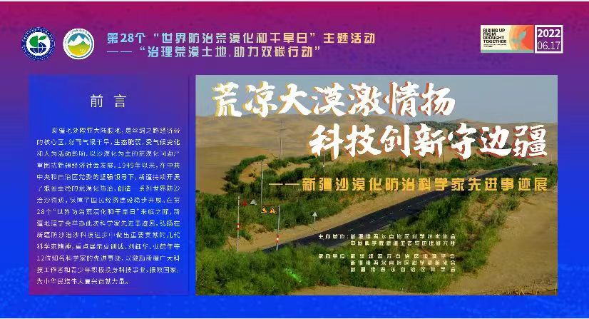 在第28個(gè)世界防治荒漠化與干旱日之際,新疆科協(xié)、中科院新疆生態(tài)與地理研究所、新疆地理學(xué)會(huì)、新疆科學(xué)探險(xiǎn)協(xié)會(huì)等單位聯(lián)合組織開展了“治理荒漠土地,助力雙碳行動(dòng)”主題活動(dòng)日,以舉辦塔克拉瑪干沙漠論壇、防沙治沙科學(xué)家先進(jìn)事跡展、多媒體信息平臺(tái)全面展示、新疆自然博物館專題展等多種形式,研討交流世界荒漠化防治科技新進(jìn)展,宣傳中國(guó)生態(tài)文明建設(shè)新成效,弘揚(yáng)新疆防沙治沙科學(xué)家精神,全面提升公眾綠色發(fā)展意識(shí)。