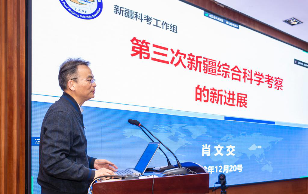 特邀報告環節,中國科學院新疆分院院長、中國科學院院士、歐洲科學院院士肖文交研究員,中國科學院地理科學與資源研究所文區域發展首席專家、國際歐亞科學院院士方創琳研究員,中國科學院新疆生態與地理研究所穆桂金研究員分別以“新疆第三次科考成果匯報”“烏魯木齊市高質量發展與現代化都市圈建設”“從文化昆侖到地理昆侖”為題作特邀報告。