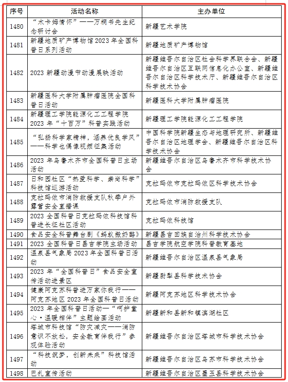 2023年全國科普日優秀活動名單(新疆)