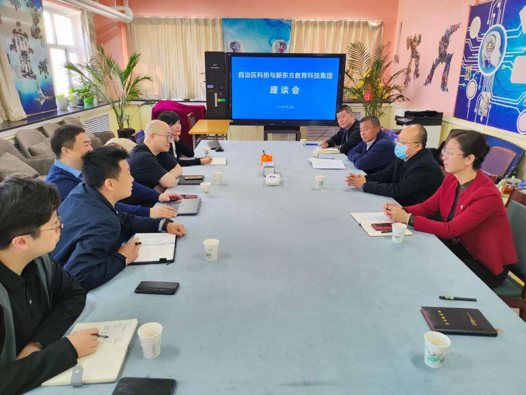 自治區科普活動中心(青少年科技中心)主任蘇紅、新東方智慧教育事業部副總經理劉斌立等參加座談會。