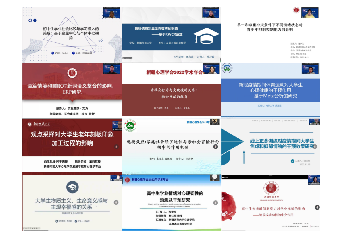 本次學術年會還設置了“社會心理與行為”“學習與認知心理”“人格與心理健康”三個分論壇以及兩組研究生論壇,吸引了全疆各大中專院校、科研院所心理學研究者、中小學心理學相關專業(yè)師生及相關從業(yè)人員的關注和投稿,論壇主辦單位根據(jù)選題的可行性、論證的邏輯性、結論的創(chuàng)新性等標準遴選出27篇文稿作會議報告。27篇文稿匯報領域覆蓋教師情緒體驗、在線教學效果、校園環(huán)境等影響個體心理行為,學生的學業(yè)投入、社會情感能力發(fā)展、親社會人格、閱讀障礙、校園霸凌、工作記憶等心理學前沿研究領域和熱點現(xiàn)實問題。參會者一致認為,學術報告的問題真、方法新、水平高,體現(xiàn)了我區(qū)心理學研究、人才培養(yǎng)所取得的重要進步和成果。