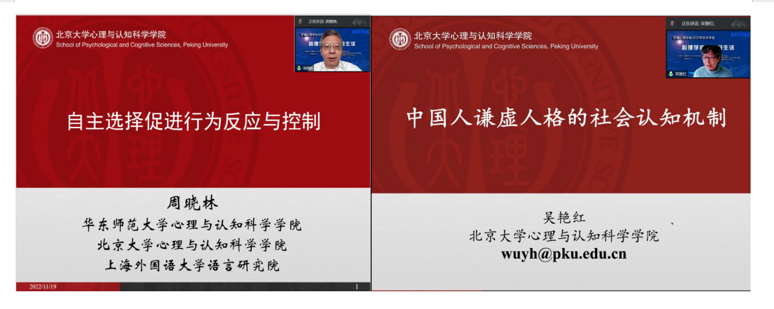 特邀報告環(huán)節(jié),來自華東師范大學心理與認知科學學院周曉林教授、北京大學心理與認知科學學院吳艷紅教授分別作題為《自主選擇促進行為反應與控制》《中國人謙虛人格的社會認知機制》的報告。周曉林教授從研究背景、自主選擇促進行為與控制、結論三個方面進行報告,用13個行為實驗探究了自主選擇對行為的影響,回答了自主選擇影響個體行為表現(xiàn)的方式、相應認知加工的具體層次以及制約因素;吳艷紅教授從謙虛人格的社會認知特征出發(fā),探討了他人對謙虛者的印象以及謙虛者的自我印象,闡明了謙虛人格對心理健康產(chǎn)生的影響機制以及謙虛影響社會交往的認知神經(jīng)機制。