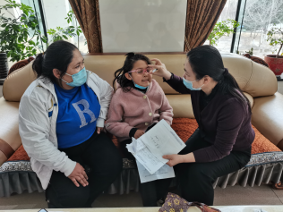 2023年2月25日,在且末縣兩個村的科普宣傳、專家咨詢、現(xiàn)場義診活動結(jié)束后,一進(jìn)賓館大廳就看見一對母女用期待的眼神張望著,看見我們就問:“是自治區(qū)來的專家嗎?”原來這位母親聽說自治區(qū)來的醫(yī)療專家團(tuán)隊(duì)中,有一位眼科專家,她就帶著8歲的女兒阿迪拉來賓館等候。