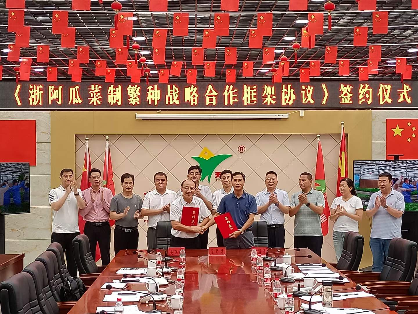 會上,新疆天玉種業(yè)有限責(zé)任公司與浙江省農(nóng)業(yè)科學(xué)院蔬菜研究所簽訂《浙阿瓜菜制繁種戰(zhàn)略合作框架協(xié)議》,并掛牌成立浙阿瓜菜制種研發(fā)合作中心。