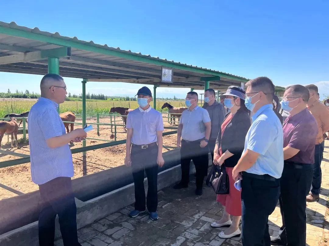 展示會后,與會人員前往阿都沁艾樂畜牧良種繁育專業合作社為武漢市對口支援博樂市科技項目“博樂市良種馬繁育示范基地”以及“博樂市良種牧草開發與推廣應用基地”進行揭牌,并觀摩了牧草機械化收割演示,詳細了解牧草收割、打捆包裝、青貯制作、飼喂等技術。