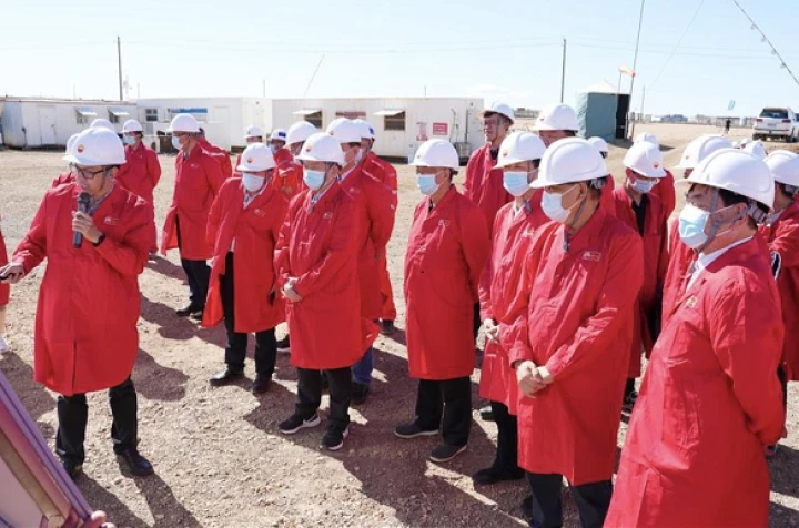 緊接著,院士和專家們來到位于白堿灘區(qū)(克拉瑪依高新區(qū))的潔凈能源國(guó)家實(shí)驗(yàn)室(籌)中試基地考察。