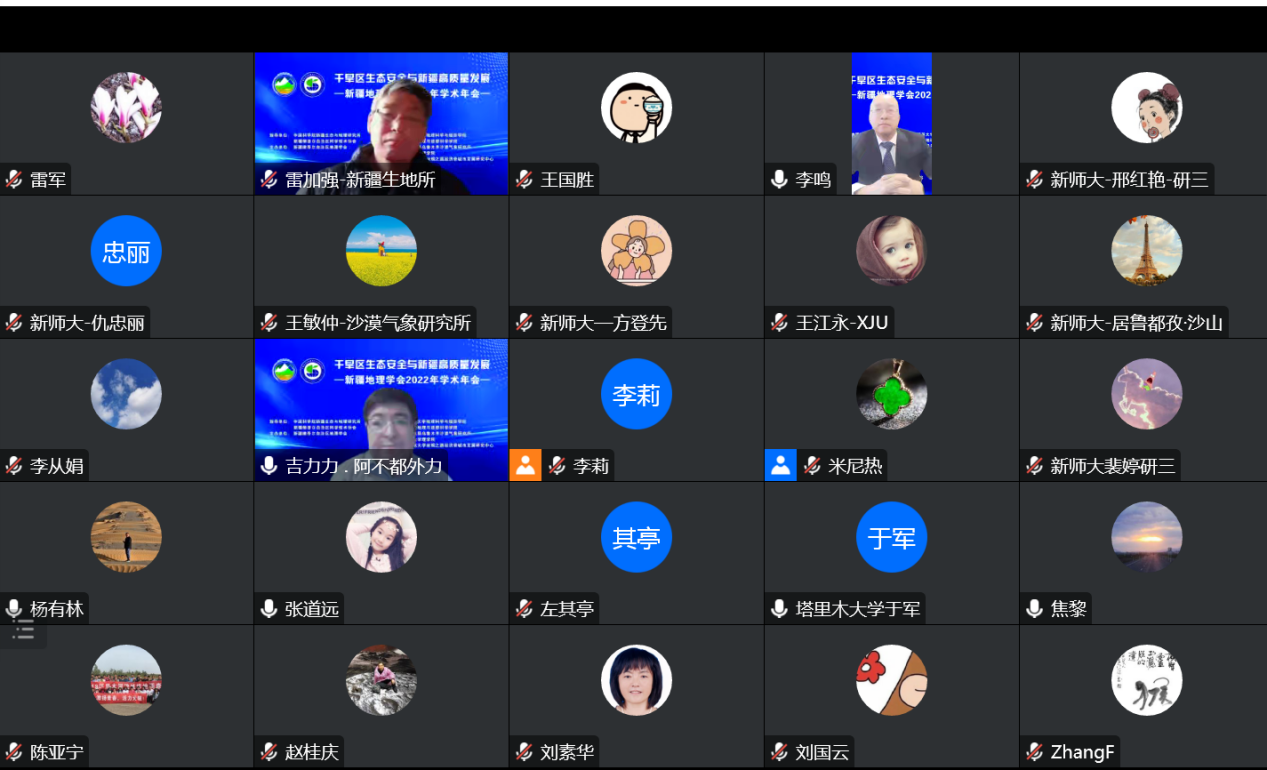 來自中科院新疆生態(tài)與地理研究所、新疆大學(xué)、新疆師范大學(xué)、石河子大學(xué)、塔里木大學(xué)、新疆農(nóng)業(yè)大學(xué)、新疆伊犁師范大學(xué)、烏魯木齊市教研中心等單位的近300位學(xué)者在線參加會議。