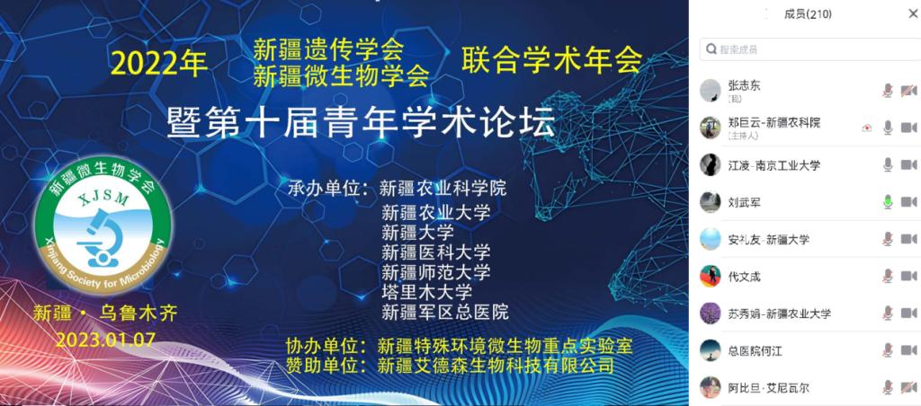 本屆論壇由新疆農(nóng)業(yè)科學(xué)院、新疆農(nóng)業(yè)大學(xué)、新疆大學(xué)、新疆醫(yī)科大學(xué)、新疆師范大學(xué)、塔里木大學(xué)、新疆軍區(qū)總醫(yī)院聯(lián)合承辦。新疆微生物學(xué)會(huì)和新疆遺傳學(xué)會(huì)各專(zhuān)委會(huì)、理事和會(huì)員代表200余人以線上形式參會(huì)。