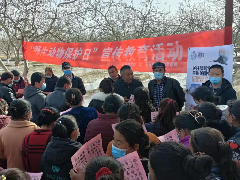 在于田縣阿日希鄉活動現場,新疆林學會和于田縣林業和草原局在田頭地頭開展了“野生動植物保護日”宣傳活動。為當地群眾發放維漢雙語版野生動物種類宣傳資料。近200名村民受到了科普宣傳教育。村民紛紛表示一定會做保護野生動植物的守護人,堅決保護好生態環境。