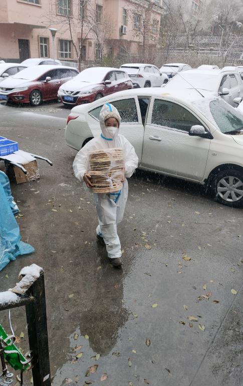 買合布孜木·艾合買提是新疆科普雜志社的一名編輯,目前下沉至天山區團結路街道領館南社區,主要負責物資保供工作。她每天早晨吃完早飯,更換防護服下樓與院內超市銜接登記居民所需品。從上午10點左右開始聯系各個樓的志愿者來接蔬菜包等生活必需品,并督促及時配送到位,12點左右將送到小區門口的藥品,進行消殺和登記,安排配送員送至居民家里。這些是她下沉后每天都要重復做的工作。“小小”的她已經成為了領館南社區防疫一線工作人員這個大群體的一部分了。