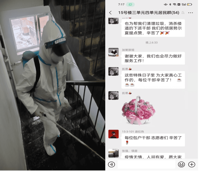 努爾夏提·阿布都熱西提是新疆科普雜志社的一名黨員干部,也是一名下沉至烏魯木齊市天山區湖源巷西社區的抗疫一線工作人員。樓道消殺和垃圾清運以及宣傳防疫知識是他的日常,其中背著消毒桶每天兩次爬樓消殺是他最重要的工作。