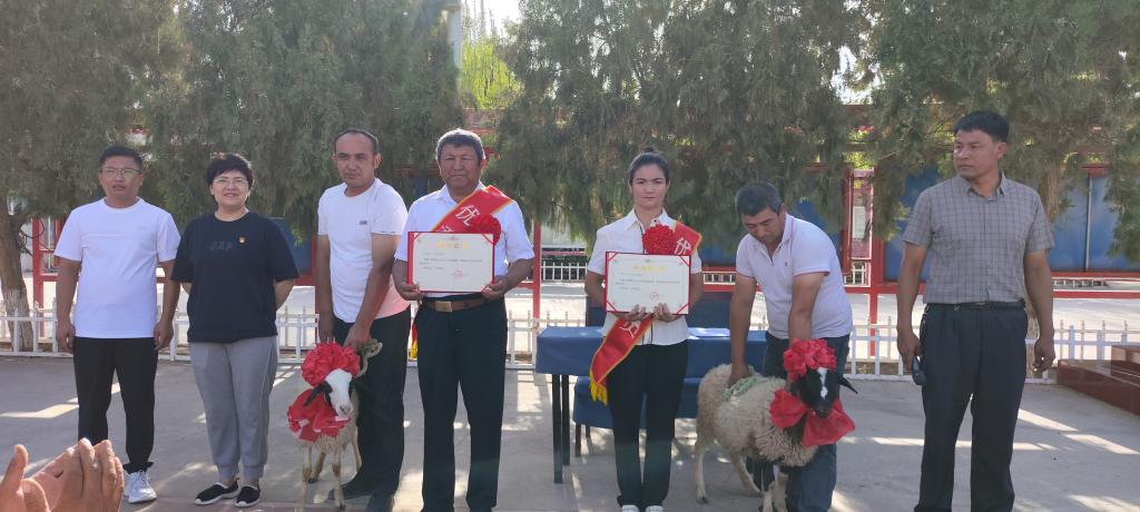 與以往的表彰形式不同,本次表彰活動“洋氣十足”。只見優秀黨員身披綬帶、胸戴紅花,身旁則是本次表彰的獎品——頭頂大紅花的多胎綿羊。優秀黨員麥提圖爾蓀·托合提手拿榮譽證書,“喜氣洋洋”地看著身旁的“獎品”,高興地合不攏嘴:“這次獎勵,專門征求了我們的意見,結合我們的需要發放多胎羊,我很高興。今后我一定努力帶動身邊更多黨員、村民參與到村里各項工作和活動中,特別是努力推動發展產業經濟,共同把我們繁榮村建設成美麗鄉村。”農牧民群眾看到這次別開生面的表彰,表示很受鼓舞,“這樣的表彰很生動,今后我也要向麥提圖爾蓀大哥學習,積極申請入黨,向黨組織靠攏,做身邊人的榜樣,希望將來也能獲得優秀黨員的榮譽。”村民圖迪罕·奧斯曼十分認真地說到。