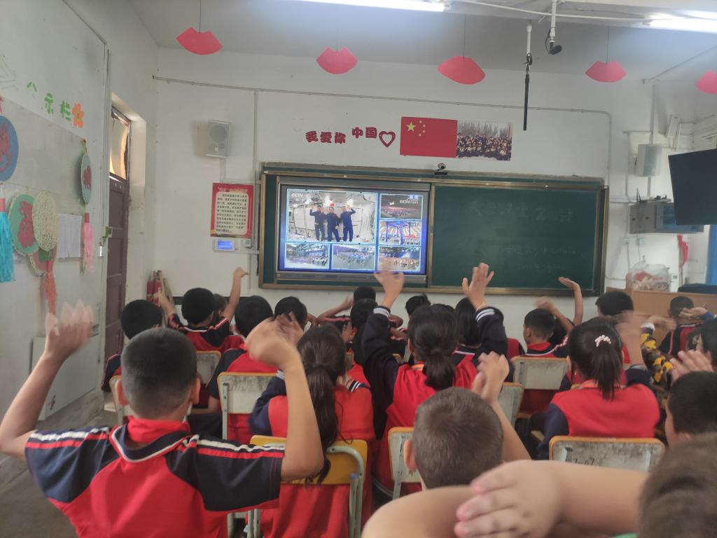 當天下午,神舟十六號航天員景海鵬、朱楊柱、桂海潮在太空艙進行科普授課;地面課堂上,中心小學的同學們聚精會神的坐在大屏前和全國各地的同學們一起收看這場精彩科普課。