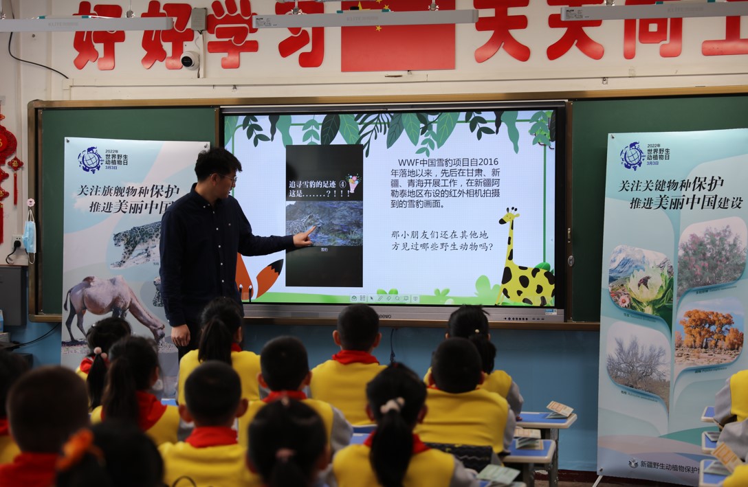當(dāng)日下午,“世界野生動植物日”科普活動走進了校園。來自新疆大學(xué)生命科學(xué)與技術(shù)學(xué)院的鐘林強博士向烏魯木齊市第三小學(xué)的同學(xué)們科普旗艦物種的有關(guān)知識,讓在校學(xué)生從課堂里關(guān)注旗艦物種、關(guān)注新疆野生動植物保護。