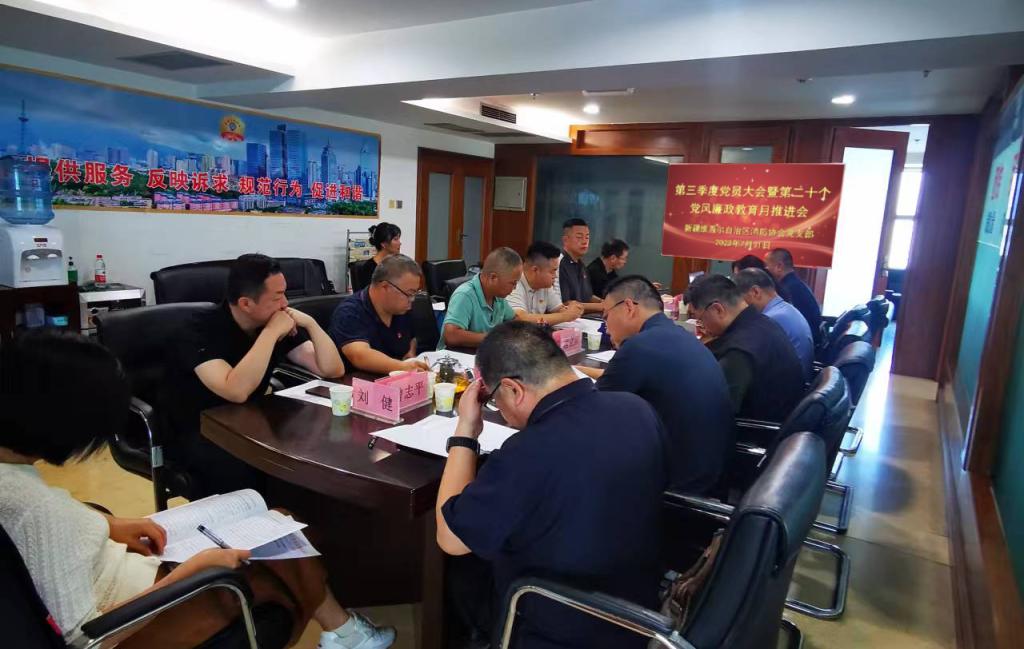 2023年7月31日,新疆消防協會召開以“強黨性、守紀律、正作風”為主題的第三季度黨員大會暨第25個黨風廉政教育月推進會。新疆消防協會會長張照雄出席會議并講話,黨支部書記、秘書長閆懷宣主持會議并做黨風廉政建設工作報告。副會長居立新及全體黨員參加會議。