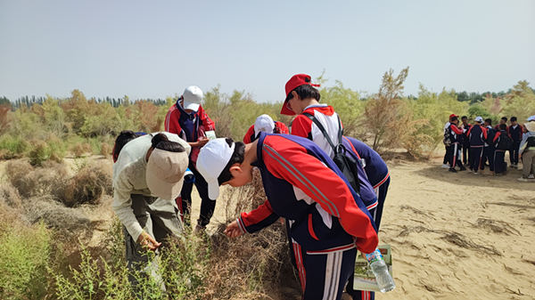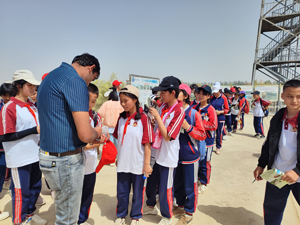 5月18日,策勒站組織了科普館參觀、科普講解、室外實驗區參觀及實踐活動,吸引策勒縣三中近百名師生參與。“干旱區防風固沙植物駱駝刺種子培育”“探索荒漠植物的形態特征”“潤澤大地:揭秘土壤含水率的秘密”“高望遠眺:使用測高儀精準測量植物生長之巔”等4個實驗吸引學生們積極參與互動。