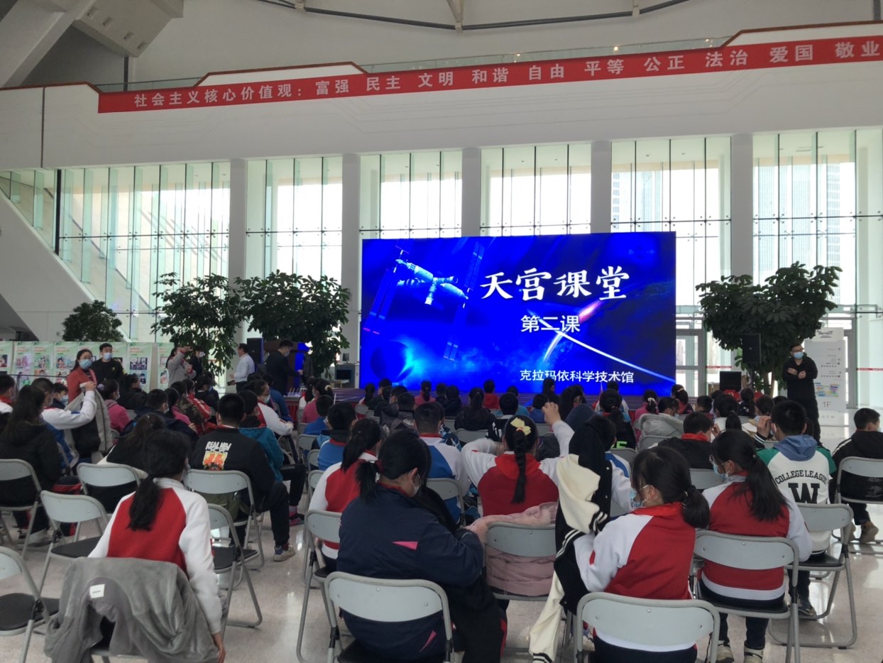 克拉瑪依市科協(xié)精心組織了本次活動,在克拉瑪依科技館一樓大廳開展了主場活動,并協(xié)同市教育局組織各中小學(xué)在教室里同步觀看太空授課。