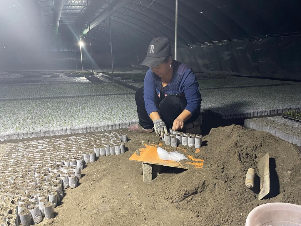 “我們育蔬菜苗已有十年的歷史,自己在房前屋后蓋了小型的大棚,由我們夫妻倆親自打理,我們家苗子的品質也經過一次次選育優化,存活率、產量高,口感好,百姓喜歡。我們不愁賣,客戶多、銷路廣,苗子能賣到很遠,附近的團場、奎屯、獨山子、克拉瑪依到北屯,都有人過來買我們的菜苗子。”在大棚里正在裝土的馬伊德斯妻子說。