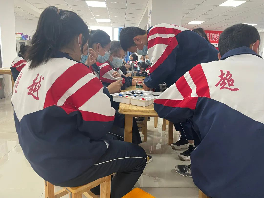 課上,同學(xué)們分成小組,有的對(duì)機(jī)器人進(jìn)行組裝,有的對(duì)機(jī)器人進(jìn)行調(diào)試實(shí)驗(yàn),并進(jìn)行優(yōu)化。還有不少小組對(duì)自己組裝、調(diào)試過的機(jī)器人進(jìn)行問題記錄,對(duì)機(jī)器人與程序進(jìn)行優(yōu)化重試。