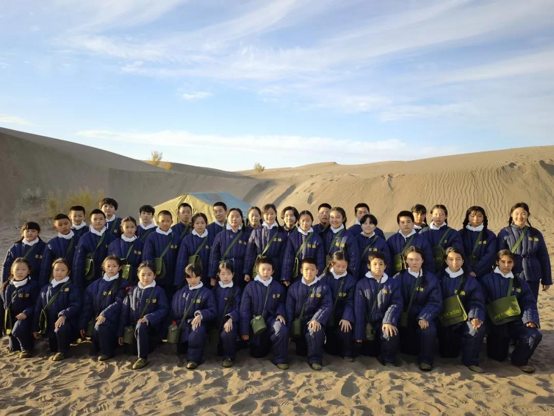 近一個月的排練時間,傾注了所有主創人員和小演員們的心血,大家穿越時空親身感受老一輩石油人的艱辛。井架、冰人、年代棉服、膠皮鞋、沙漠……處處展現了克拉瑪依油田開發初期的歷史場景,這些立體生動的場景讓師生們仿佛重新回到了那段60年前的舊時光。油田開發初期,條件艱苦,所有建設完全靠人抬靠肩扛,老一輩石油人不怕苦不怕累,電影中最后一個場景是隊長用身體堵住噴發的石油,感受到了石油人天不怕地不怕的犧牲精神,孩子們都表示要將石油精神代代傳承。