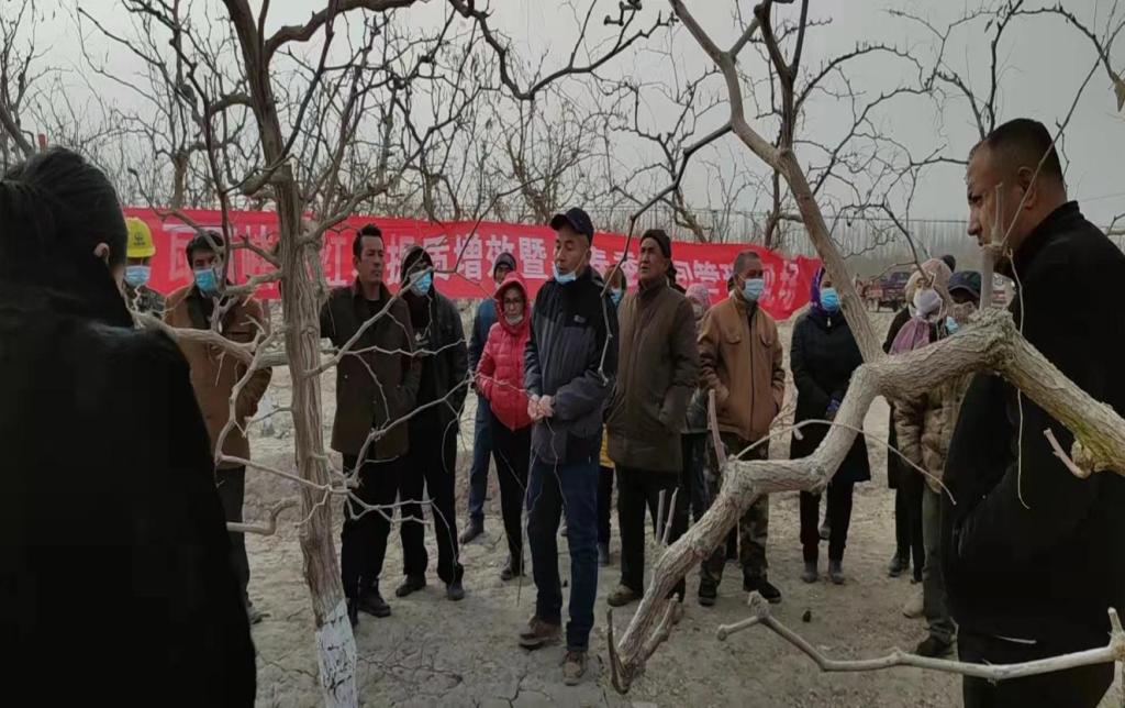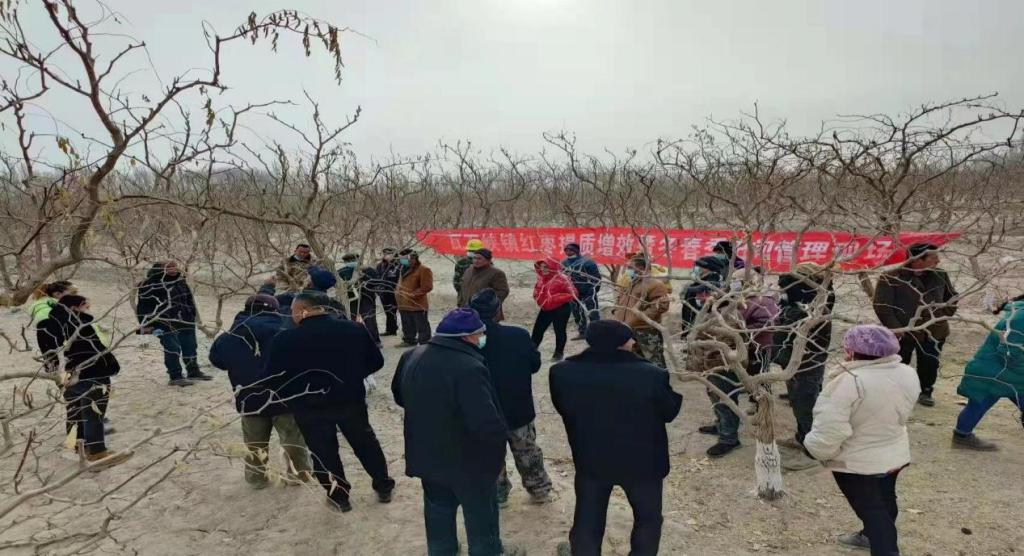 為解決棗農棗園管理問題,在瓦石峽鎮的紅棗地里,紅棗土專家現場給村民講解紅棗春季管理、棗樹春季修剪、間移間伐、整形修剪、施肥、防病蟲等田間管理實用技術進行現場實操培訓,為切實做好棗樹春耕春種管理工作打下堅實的基礎。