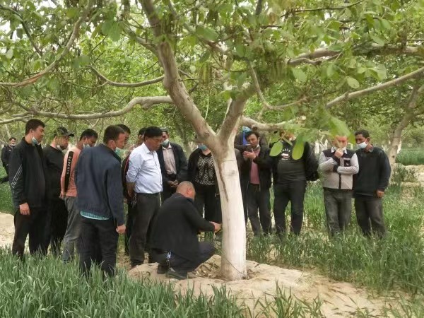 四月以來氣溫逐漸升高,是果樹病蟲害多發季,葉城縣科協早動員、早部署。近日,葉城縣科協組織縣林果專家在洛克鄉1村召開了林果病蟲害防治現場推進會,全面安排部署了病蟲害防治、?;ù俟巹﹪姙⒌戎攸c工作,并現場組織農民開展病蟲害預防工作,確保林果業豐產豐收。