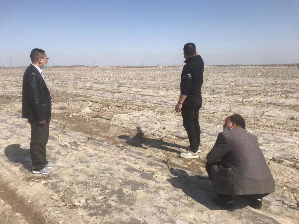 4月1日,烏蘇市科協孫厚典一行三人走進烏蘇市皇宮鎮老莊子村村民孫自軍家的金銀花種植地,實地察看金銀花幼苗的栽植情況。