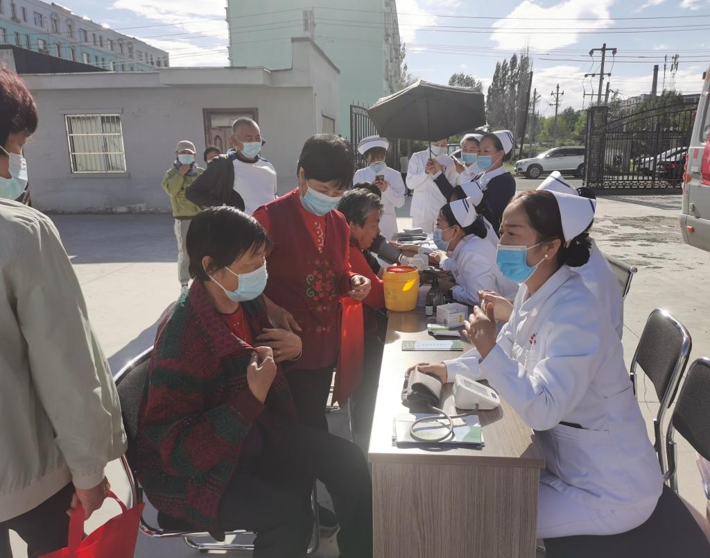 來自塔城地區人民醫院的醫護人員來到和平街道營盤社區,為居民免費開展測量血壓、血糖、咨詢等服務,針對高血壓、糖尿病、心臟病、外科系統等常見病的預防及用藥飲食運動進行耐心指導,普及新冠疫苗注射的必要性及注意事項,詳細解答社區居民提出的各類咨詢問題。