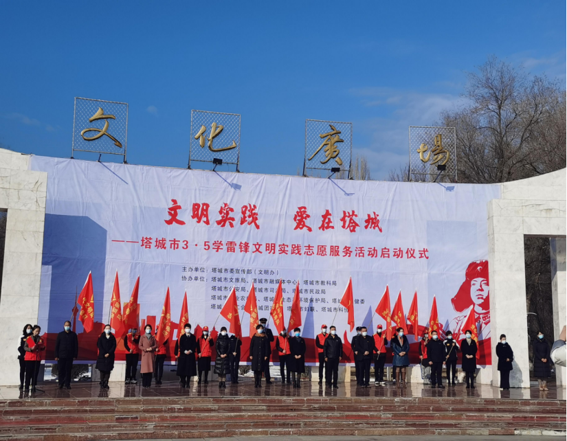 3月5日,塔城市宣傳部文明辦在文化廣場舉辦“文明實踐 愛在塔城”塔城市“3·5”學雷鋒文明實踐志愿服務活動啟動儀式,塔城市市委常委、宣傳部部長馬新偉、各單位分管領導及十四支志愿服務隊參加了此次活動啟動儀式。馬新偉及參加啟動儀式的四套班子領導為志愿服務總隊及各支志愿服務隊授旗,并做了致辭。