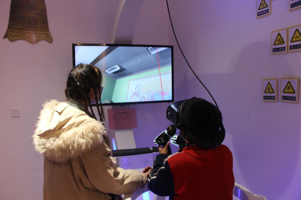 孩子們參觀了“生命·健康、習語·未來、公共·安全、科技·生活、農業·現代、信息·傳遞、生態·環境、特色·發展、探索·發現”等九個展區,孩子們戴上VR體驗專用眼鏡,可以選擇不同場景的逃生情形,火災、雷雨天氣、泥石流等,拿住手柄,根據提示進行逃跑、躲避等交互操作,在危險情況下學會逃生。