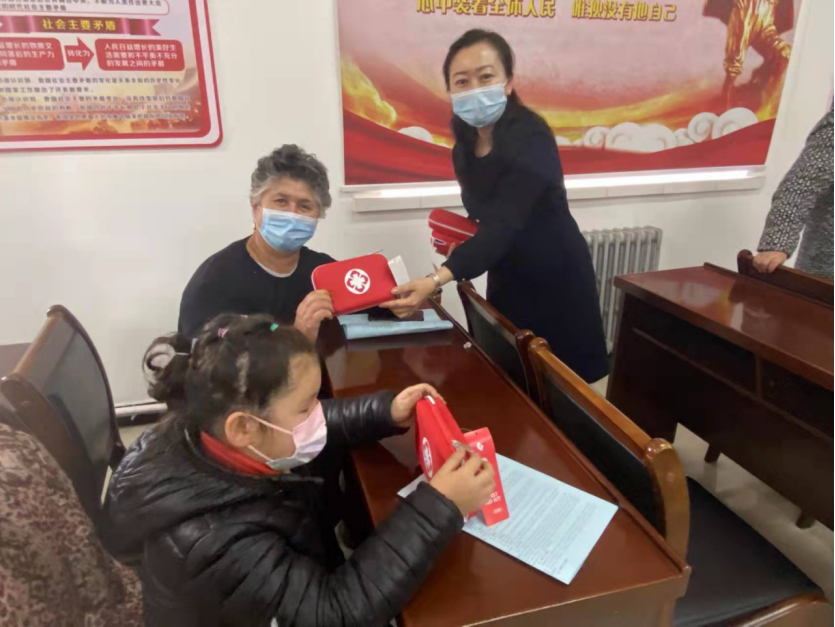 此外,科技志愿服務隊隊員們為前來參加活動的群眾免費發放健康生活宣傳冊、家庭急救包。