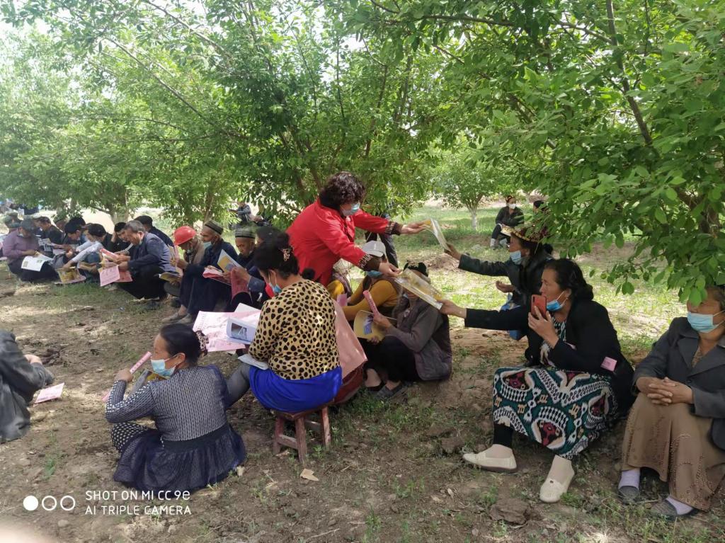 新梅培訓完后,伽師縣科協主任布且木,結合發生在群眾身邊的真實案例,進行《憲法》《民法典》《保密法》《婦女權益保障法》《治安管理處罰條例》宣講?,F場發放宣傳單175份,《科技與生活》雜志100本。