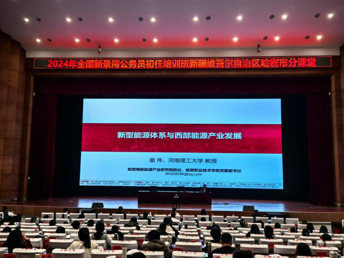 11月14日,哈密市科協(xié)組織開展“科學(xué)家進(jìn)黨校”活動(dòng),特邀哈密市豫哈研究院院長(zhǎng)、哈密職業(yè)技術(shù)學(xué)院黨委副書記、副院長(zhǎng)盛偉為市委黨校“2024年新錄用公務(wù)員初任培訓(xùn)班”作《新型能源系統(tǒng)與我國(guó)西部能源產(chǎn)業(yè)發(fā)展》報(bào)告。