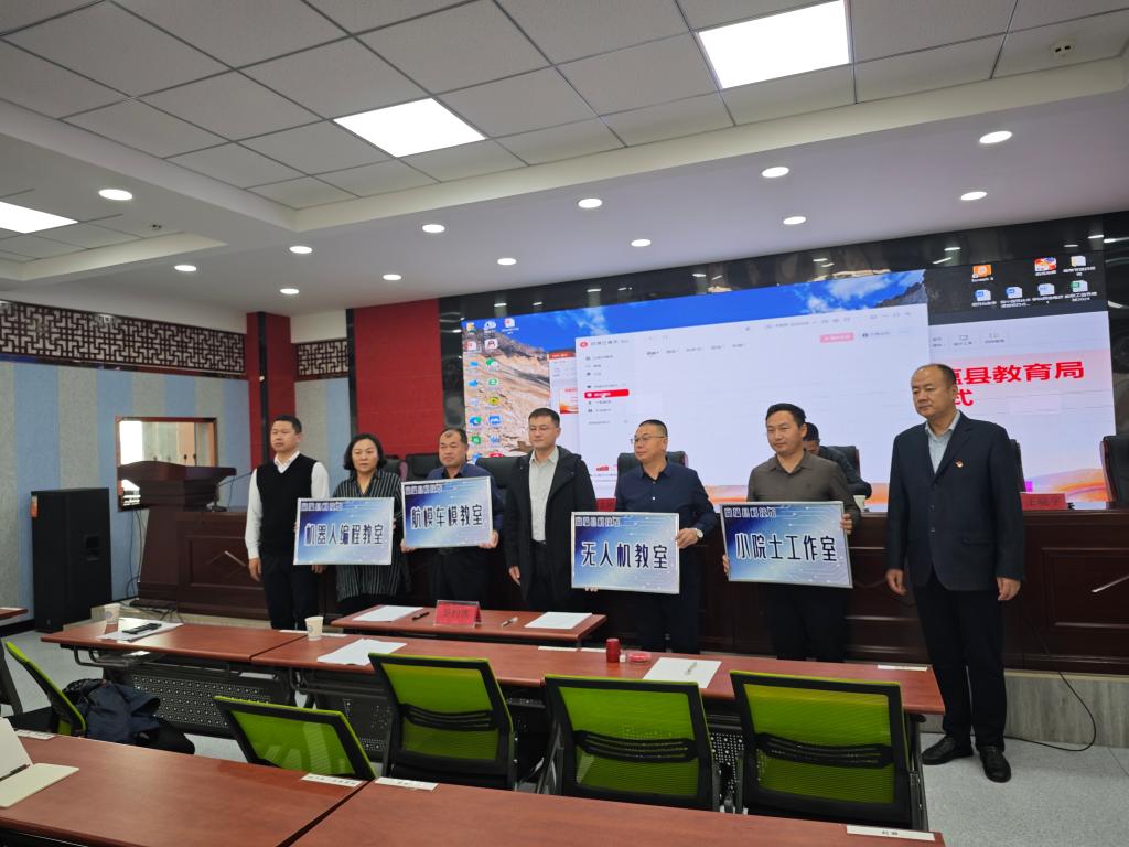 儀式上,富蘊縣科協(xié)與四所學(xué)校簽訂了館校合作協(xié)議,閆志剛為科技特色教室進行了授牌。