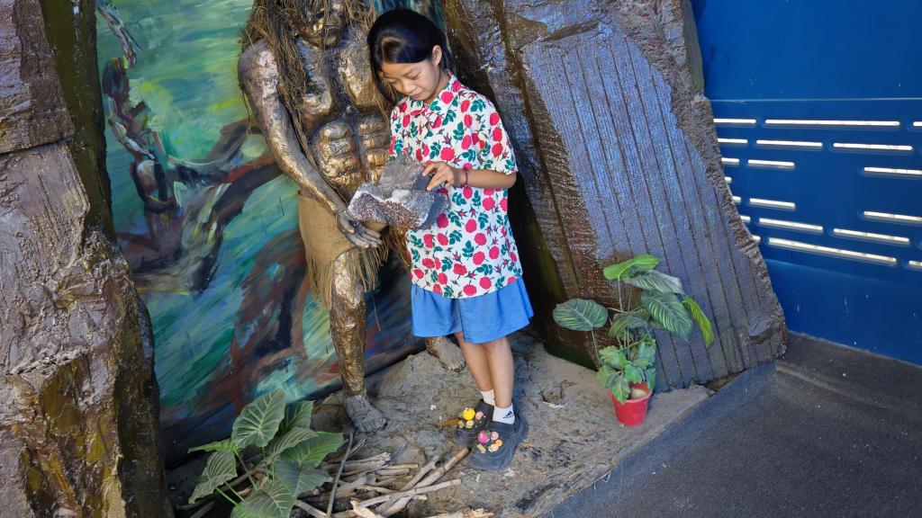 孩子們在講解員的帶領下,對科普館“宇宙與地球、人類與生命、人工智能AR”等展區進行參觀,學生們被神奇的科技力量所吸引,親身感受到了科技的魅力。