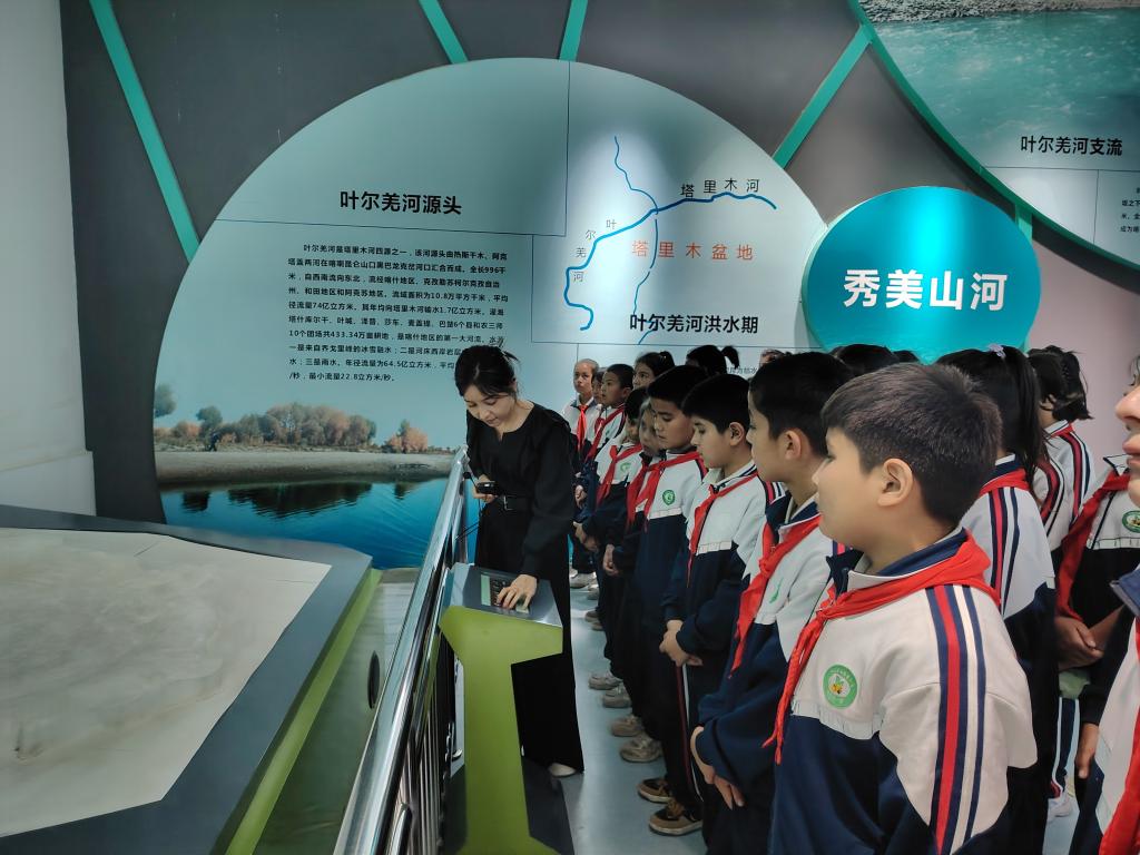 在科技館一樓大廳,學生們首先被“山川誘惑展區”吸引。通過觀看多媒體、沙盤模型、親身體驗操控以及聆聽專業解說,學生們深入了解了喀什地區的五大地形地貌知識,科學探索之旅由此拉開序幕。
