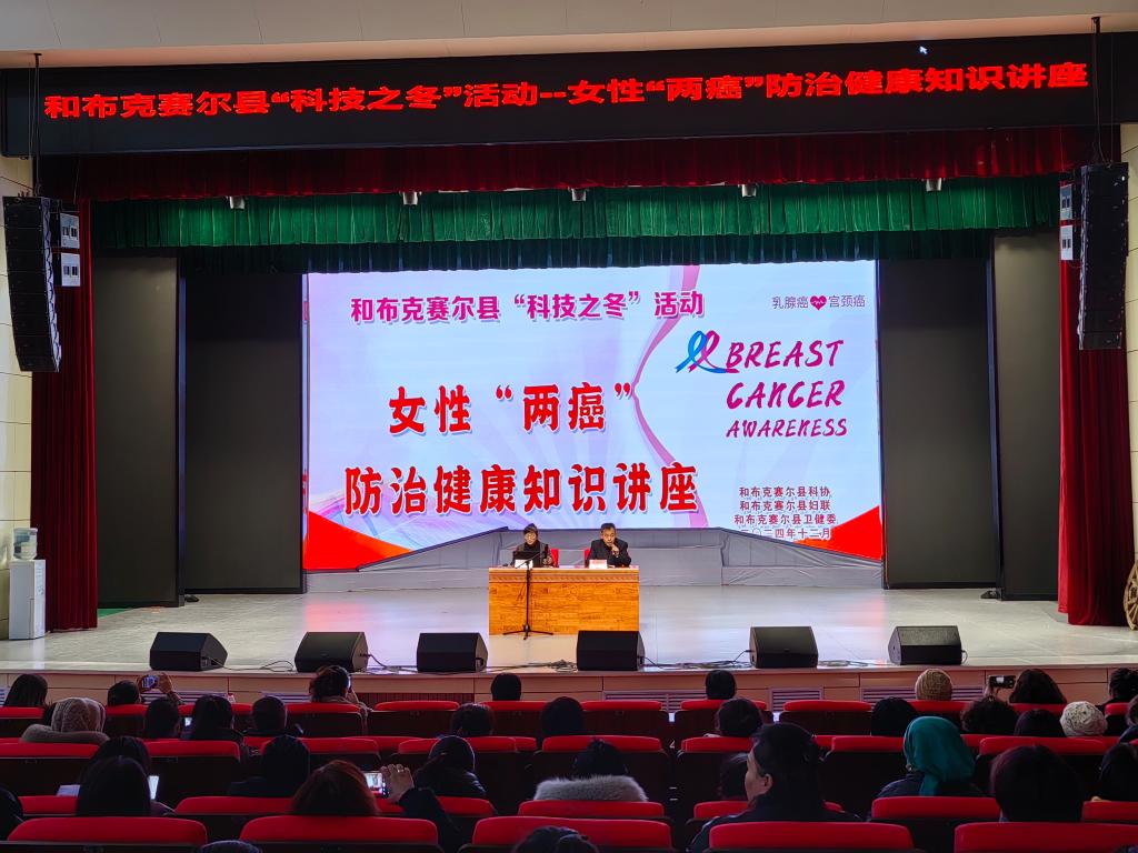 12月26日,和布克賽爾縣科協聯合縣婦聯、衛健委在縣影劇院舉辦了2024—2025年“科技之冬”系列活動——女性“兩癌”防治健康知識講座,各鄉鎮場、社區(村隊)及縣直部門近200名女性干部群眾參加了培訓。