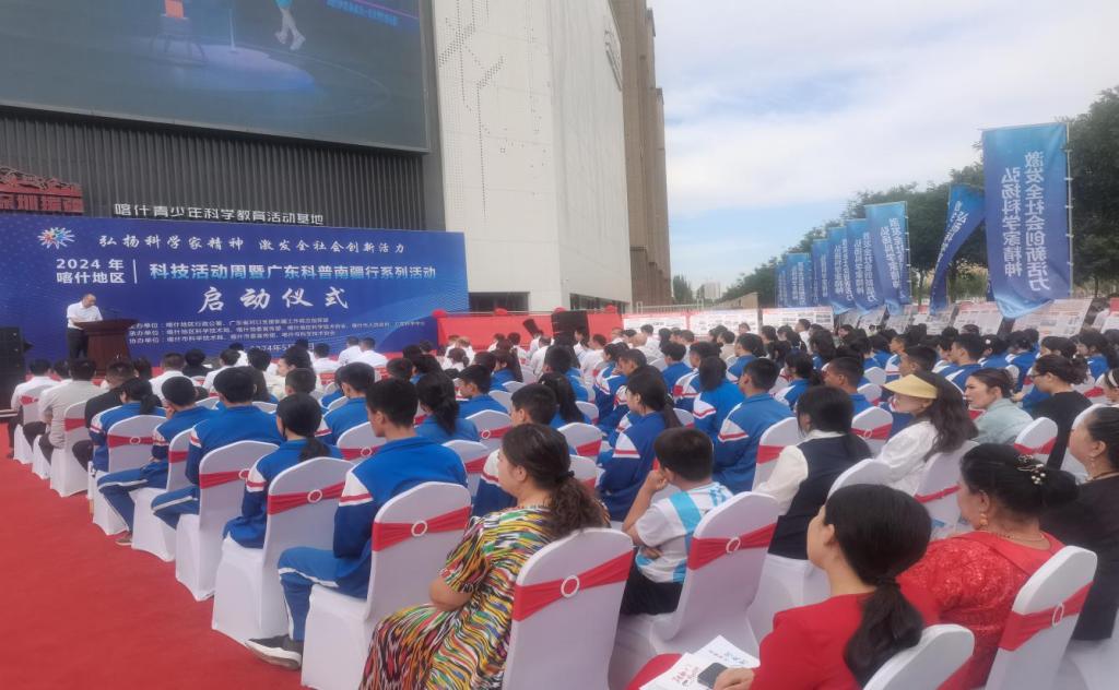 啟動儀式上,馬繼明與廣東省對口支援新疆工作前方指揮部、地區科技局、喀什市相關領導,為農業科普服務分隊、醫療衛生科普服務分隊、青少年科普教育分隊、科技志愿服務分隊授旗。
