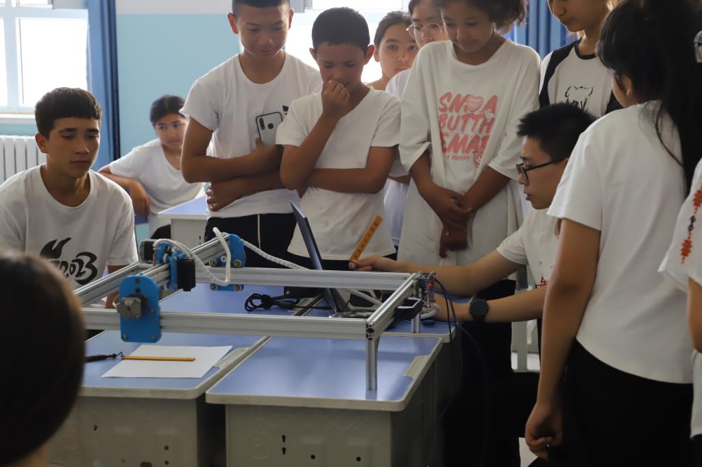 8月1日,由內(nèi)蒙古科技大學(xué)在校大學(xué)生組成的“是光青年”科技支教研學(xué)團(tuán),在老師的帶領(lǐng)下來到霍城縣江陰初級(jí)中學(xué)開展暑期科技支教研學(xué)活動(dòng)。在近5天的活動(dòng)時(shí)間里,內(nèi)蒙古科技大學(xué)“是光青年”研學(xué)團(tuán)的成員們向霍城縣江陰初級(jí)中學(xué)的學(xué)生展示了自己研制的機(jī)甲戰(zhàn)車及無人機(jī),組織中學(xué)生開展無人機(jī)載重試飛以及機(jī)器人、無人機(jī)對抗賽等;同時(shí),還開展了機(jī)器人、無人機(jī)編程教學(xué),與江陰初級(jí)中學(xué)學(xué)生共同開展《巴黎奧運(yùn)中國加油》巨幅彩圖繪制等一系列團(tuán)建互動(dòng)活動(dòng),場面很是活躍。這是霍城縣中學(xué)生迎來的第一次大學(xué)生與初中生“大手拉小手”暑期科技活動(dòng)。